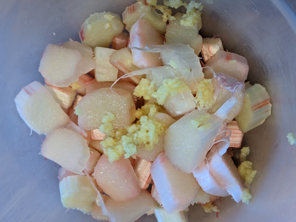 - 150g/5 oz forced rhubarb, chop into 5mm thick pieces