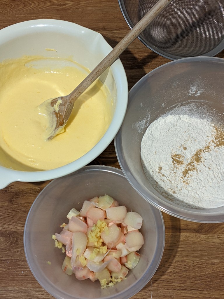 I did a quick scan on’t internet and found lots of varying recipes but which one should I chose…? I came to the decision to make up my own recipe and below you can find my delicious rhubarb and ginger cake recipe. It is so light in flavour and morishly moist. I hop you enjoy baking and eating it as such as I did.